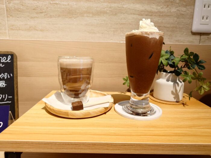 店内の暖かいところではアイスチョコレートドリンクもオススメ!生クリームをオンしてお持ちします。