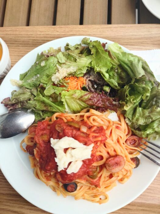 トマトベースに、酸味のあるグリーンオリーブと甘味のあるブラックオリーブがはいったソースの生麺パスタです😋💕