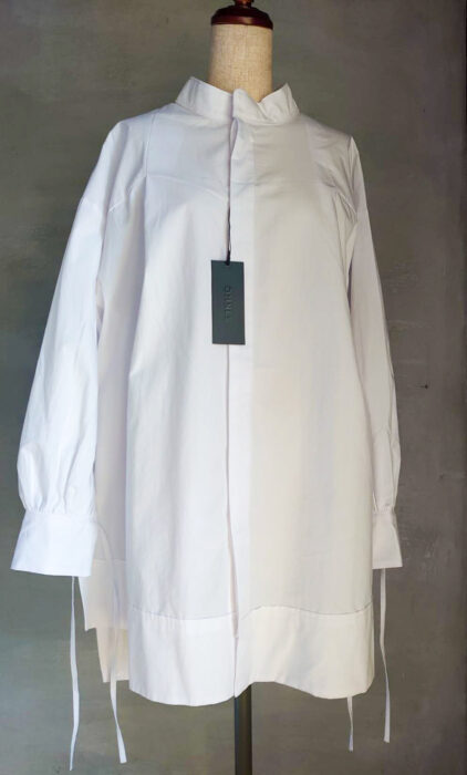 スタンド衿で甘さを押さえつつ、袖口のリボンで女性らしい雰囲気をプラスしています✨