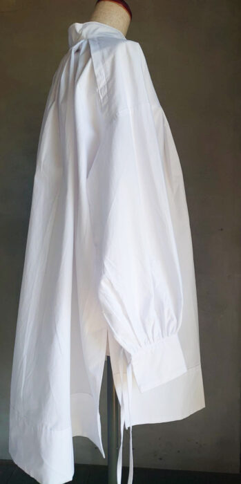 コットン100%の生地を使用したハリ感のあるブラウスです。シワ感がナチュラルな風合いを楽しめる1着。軽やかな雰囲気がこれからの季節にもオススメ。後ろが長く前はゆるやかなカーブを描く丈感が特徴的です✨