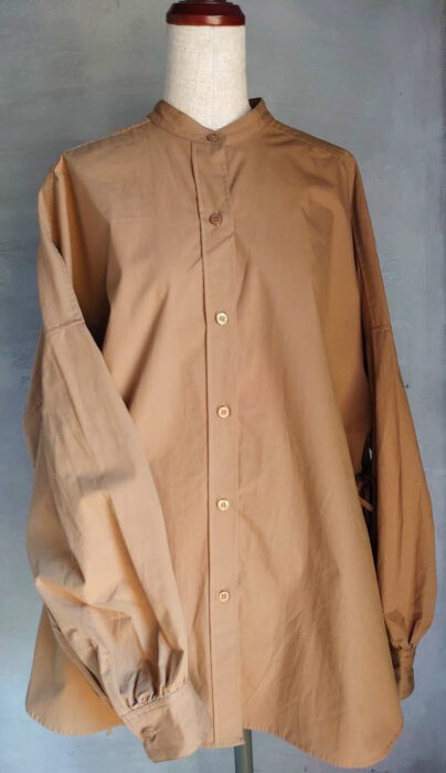 たっぷりとタイプライター生地を使ったブラウス。トレンドのふんわり袖&ビッグシルエットが素敵。