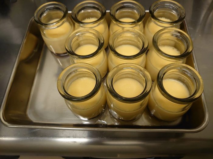 プリンの上が空いているのは…この後生クリームを追加するからなんです。皆さまへお出しするときに乗せて、完成です!個人的にはちょっと苦めのコーヒーと一緒に召し上がっていただきたい一品❤1個税込350円。