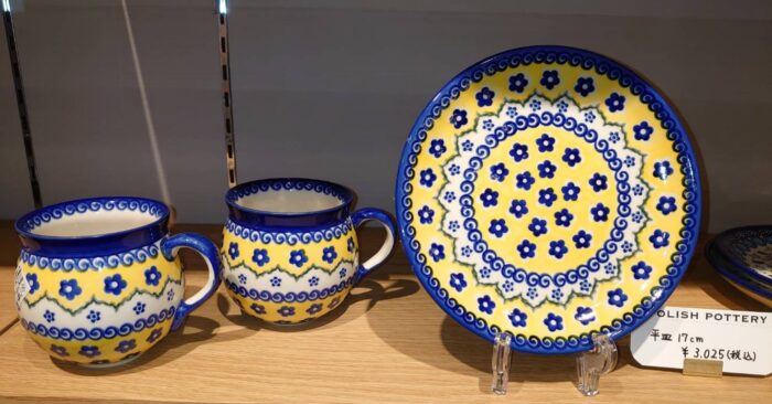 奥に並んでいるのは「ポーリッシュポタリー(ポーランドの食器)」!