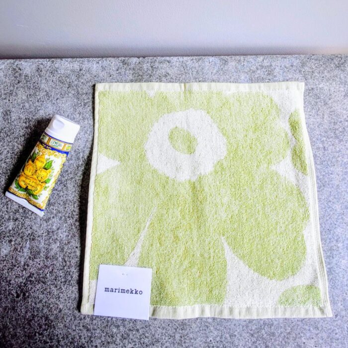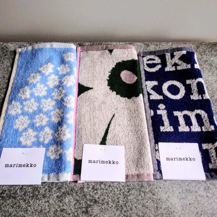 花をモチーフにした柄やロゴをデザインした、マリメッコのミニタオルです🥰💕