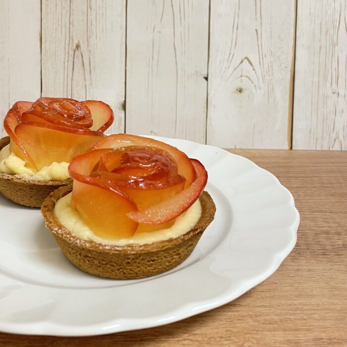 福島産のりんごを薔薇の花のように仕立てたタルトです🍎🌹✨